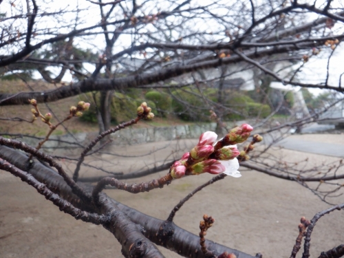 佐賀城公園内にも、ひと足早い春の気配が感じられます。