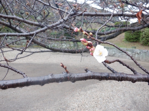 本日、公園内でソメイヨシノの花が一輪ほころびました。