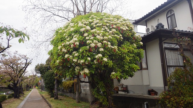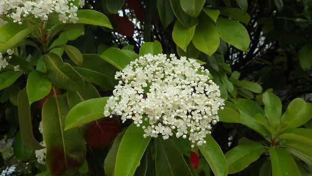 オオカナメモチです! 2026/04/09 お問い合わせをいただきました西濠南の白い花です オオカナメモチというバラ科の常緑樹で、小高木ですので3m程にしかなりません。 小さな花が集まって20㎝程の大輪となります。可愛らしい花ですね。 赤い葉がところどころに見えて、緑とのコントラストがステキです! 一覧に戻る